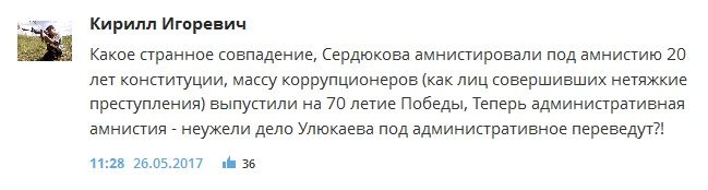 В то же время эта идея уже вызвала неодобрение среди многих пользователей Рунета. Россияне подозревают, что идею амнистии лоббируют некие важные лица, имеющие собственные интересы, а вместе с рыночными торговцами, водителями и митингующими «под шумок» избавятся от административной ответственности и проштрафившиеся чиновники.
