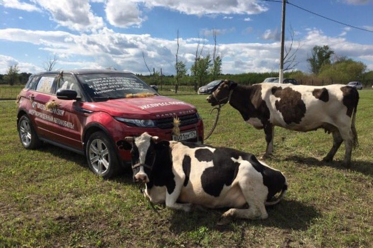 Жительница Магнитогорска запрягла в Range Rover коров