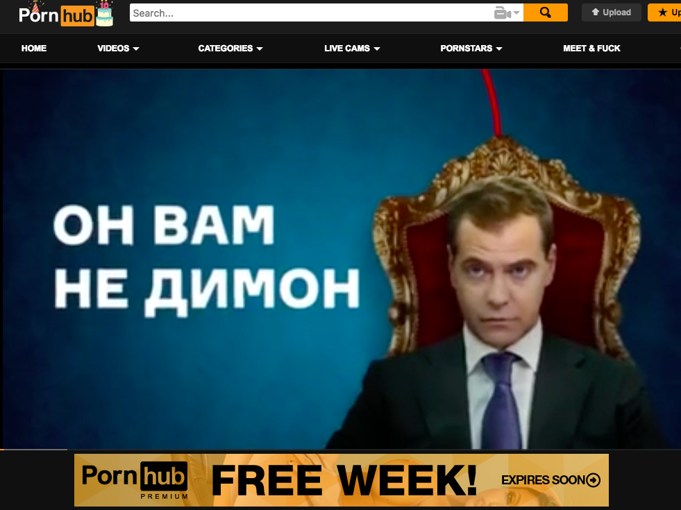 Фильм «Он вам не Димон» стал доступен всем посетителям порносайта PornHub. 31 мая ролик опубликован под заголовком «Russian corrupted politician fucked hard».